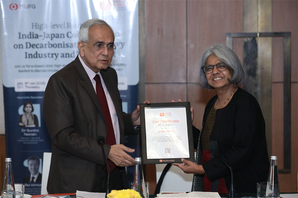 In collaboration with MUFG, PIF convened a high-level roundtable to explore practical pathways for decarbonising heavy industry and transportation—two of the most “hard-to-abate” sectors in our journey toward Net Zero. The discussion, opened by our Chairperson, Dr Rajiv Kumar, underscored a critical reality: India’s growth ambitions must be seamlessly aligned with cleaner industrial pathways. We were honored to have Takuya Senoo (MUFG) provide a global financial perspective on the vital role of long-term Indo–Japan collaboration in scaling sustainable tech. Dr Sunita Narain from Centre for Science and Environment, New Delhi, as a keynote speaker, challenged us to move beyond incremental compliance toward systemic shifts in steel and transport.