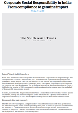 - Assessing Corporate Social Responsibility as a governance instrument, with emphasis on uneven geographic and sectoral allocation of CSR spending and its implications for equity, accountability, and development outcomes.